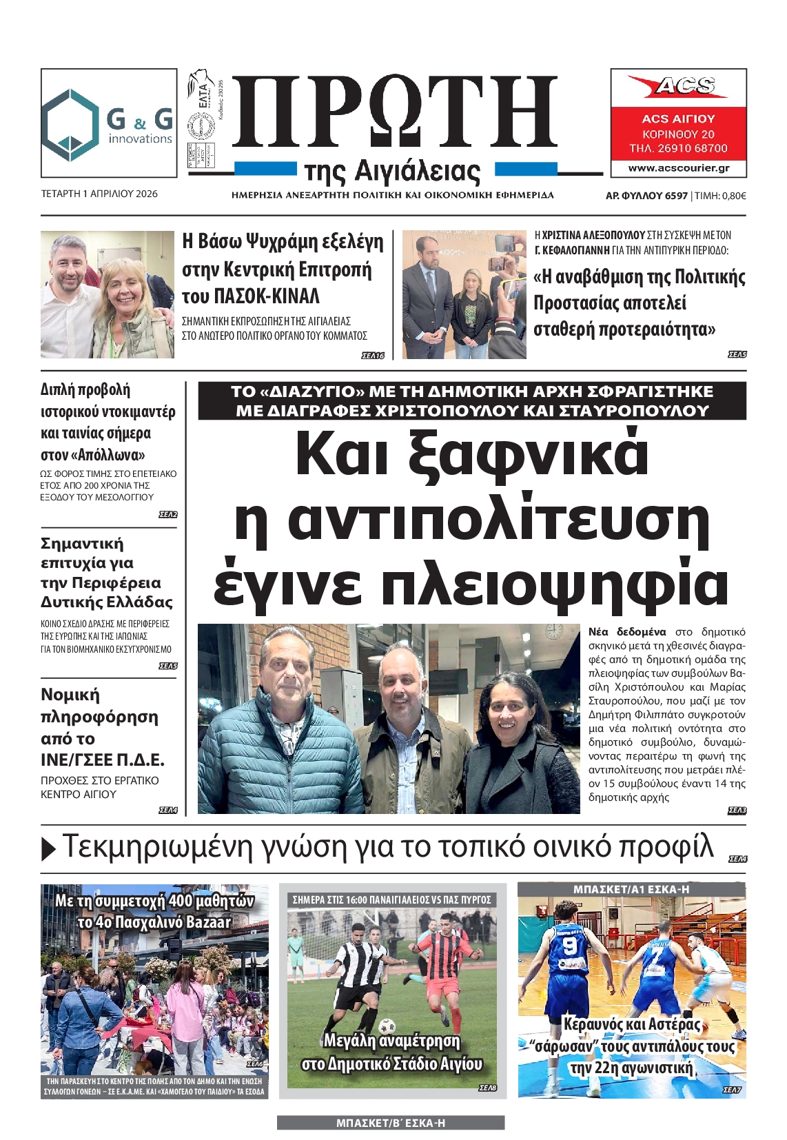 ΠΡΩΤΗ ΑΙΓΙΑΛΕΙΑΣ